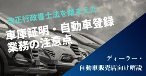 はじめに 車庫証明や自動車登録の業務については、これまで業界ごとの慣行や現場判断により、さまざまな方法で対応されてきました。 しかし、2026年(令和8年)1月1日に施行される改正行政書士法により、これらの業務について「 […]